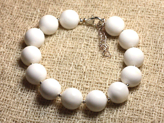 At a Great Price925 sterling Silver love beach youth Silver Helling 10mm Stracking White Pearl white opaque Bracelet Round, Smooth 7.5" for mens, womens, gf, bf & Adult.