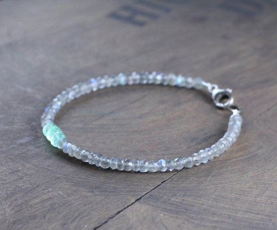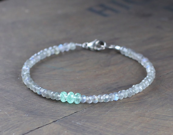 925 sterling silver memorial gift 3-3.5mm Multi Colour Labradorite & Colombian Emerald stacking Bracelet Rondelle, Faceted 18cm for mens, womens, gf, bf and adults.
