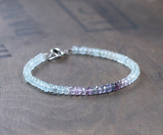 At a Great Price925 sterling silver memorial gift 3.5mm Multi Colour Ombre Purple Spinel & Aquamarine stacking Bracelet Rondelle, Faceted 18cm for mens, womens, gf, bf and adults.