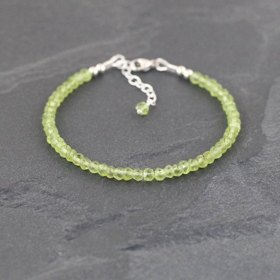 At a Great Price925 sterling Silver memorial gift 3.5mm stacking Green Peridot Bracelet Rondelle, Faceted 7" for mens, womens, gf, bf & Adult.