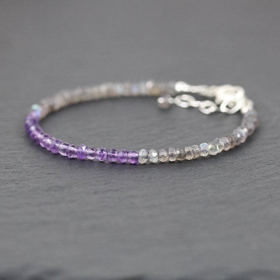 At a Great Price925 sterling Silver memorial gift 3.5mm stacking Multi Amethyst & Labradorite Bracelet Rondelle, Faceted 7" for mens, womens, gf, bf & Adult.