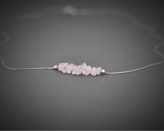 At a Great Price925 sterling Silver memorial gift 4x6mm stacking Pink Rose Quartz Necklace Chips, Smooth 16" for mens, womens, gf, bf & Adult.