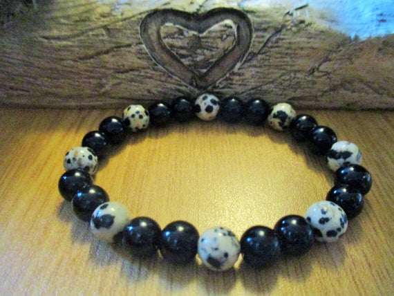 At a Great Price925 sterling silver memorial gift 8mm Multi Colour Jasper and Black Onyx stacking Bracelet Round, Smooth 18cm for mens, womens, gf, bf and adults.
