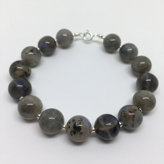 At a Great Price925 sterling Silver memorial gift Silver Helling 10mm stacking Gray Labradorite Bracelet Round, Smooth 7.5" for mens, womens, gf, bf & Adult.