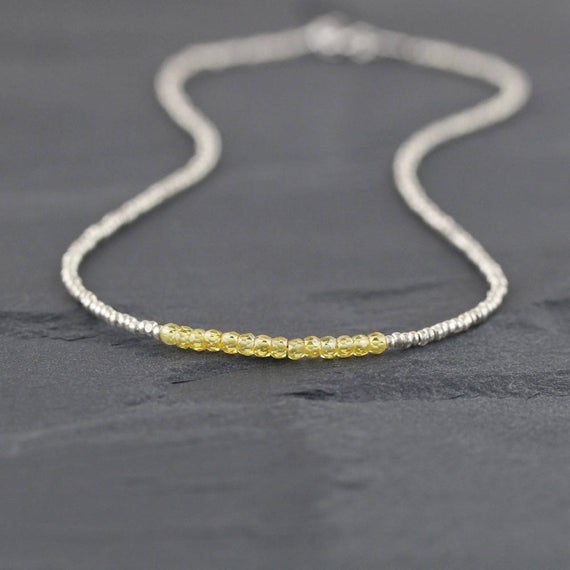 At a Great Price925 sterling Silver memorial gift Silver HELLING 3-3.5mm stacking Yellow Yellow Zircon Necklace Round, Faceted 16" for mens, womens, gf, bf & Adult.