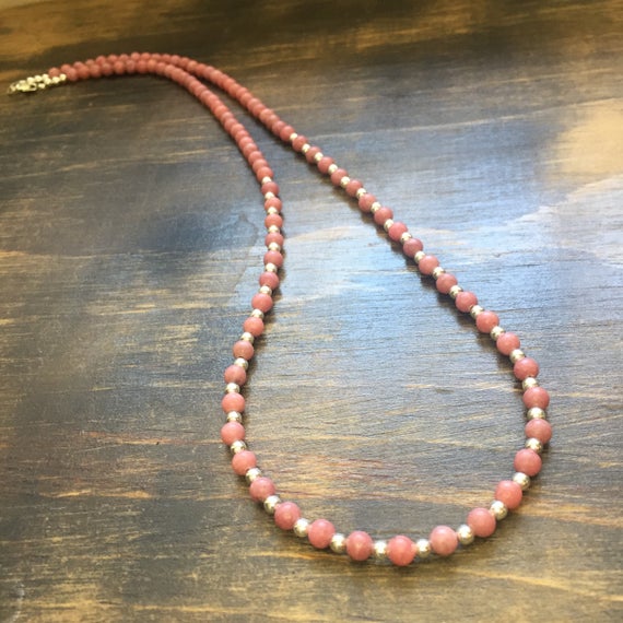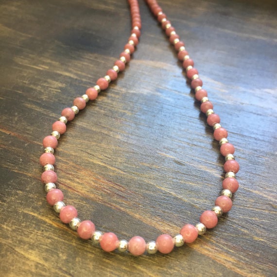 At a Great Price925 sterling Silver memorial gift Silver Helling 3-5mm stacking Pink Rhodonite Necklace Round, Smooth 22" for mens, womens, gf, bf & Adult.