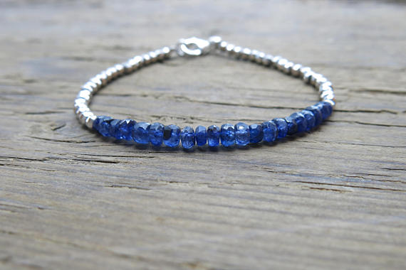 925 sterling Silver memorial gift Silver Helling 3.5-5mm stacking Blue Blue sapphire Bracelet Rondelle, Faceted 7" for mens, womens, gf, bf & Adult.