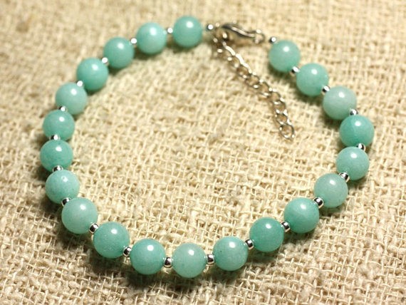 At a Great Price925 sterling Silver memorial gift Silver Helling 6mm Stracking Blue blue Jade Bracelet Round, Smooth 7" for mens, womens, gf, bf & Adult.