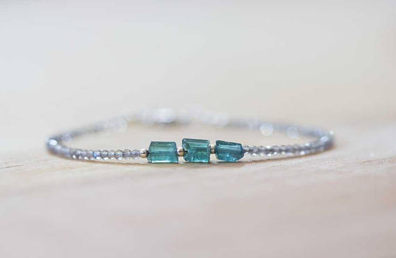 At a Great Price925 sterling silver Natural 2mm Multi Colour Tourmaline & Labradorite stacking Bracelet Round, Smooth 18cm for mens, womens, gf, bf and adults.
