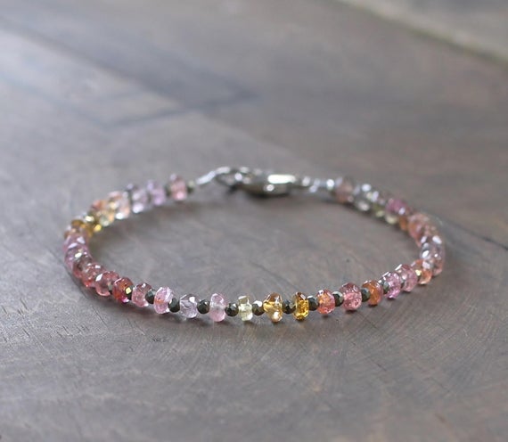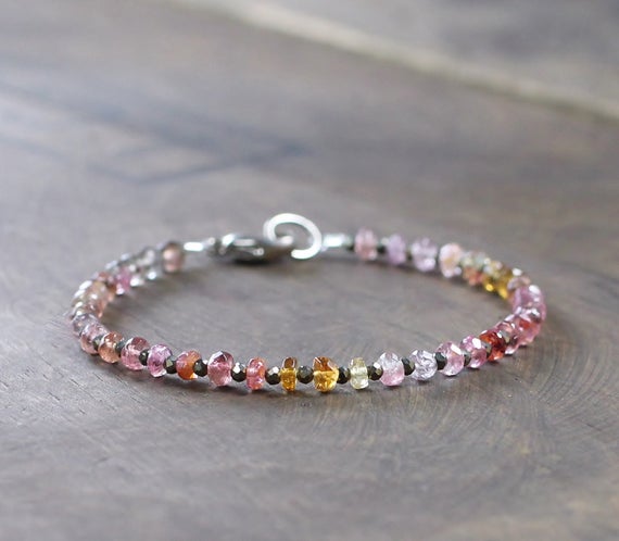 At a Great Price925 sterling silver Natural 3-3.5mm Multi Colour Multi Tourmaline stacking Bracelet Rondelle, Faceted 18cm for mens, womens, gf, bf and adults.