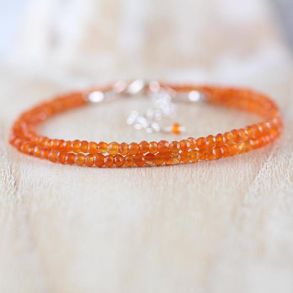 At a Great Price925 sterling Silver Natural 3-3.5mm stacking Orange Carnelian Necklace Round, faceted 16" for mens, womens, gf, bf & Adult.
