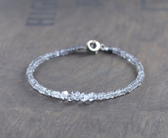 At a Great Price925 sterling silver Natural 3-4mm White Black Rutilated Quartz & Herkimer Diamond stacking Bracelet Rondelle,Nugget, Faceted 18cm for mens, womens, gf, bf and adults.
