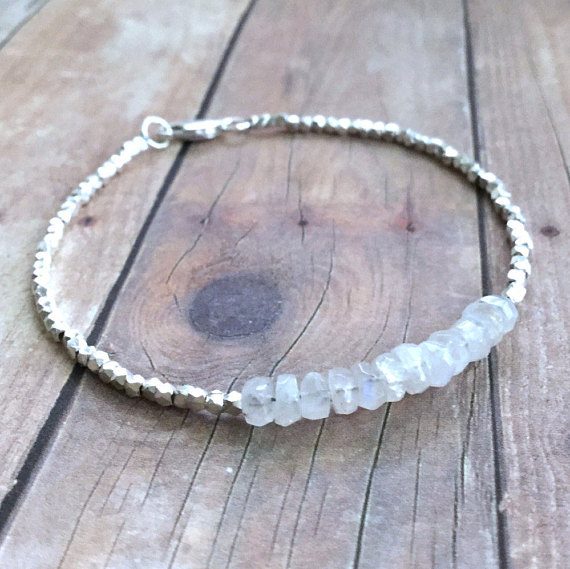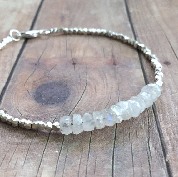 At a Great Price925 sterling silver Natural 4mm White Rainbow Moonstone stacking Bracelet Rondelle, Faceted 18cm for mens, womens, gf, bf and adults.