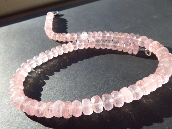 At a Great Price925 sterling Silver Natural 9mm stacking Pink Rose quartz Necklace Rondelle, Faceted 17" for mens, womens.