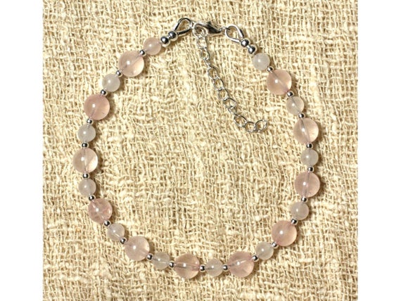 At a Great Price925 sterling Silver Natural Silver Helling 4-6mm Stracking Pink Pink Quartz Bracelet Round, Smooth 7" for mens, womens, gf, bf & Adult.