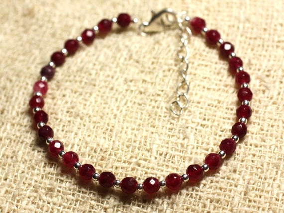 At a Great Price925 sterling Silver Natural Silver Helling 4mm Stracking Red Burgundy Jade Bracelet Round, Faceted 7" for mens, womens, gf, bf & Adult.