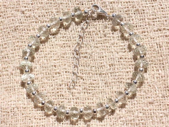 925 sterling Silver Natural Silver Helling 7mm Stracking White Phrenite Bracelet Rondelle, Faceted 7" for mens, womens, gf, bf & Adult.