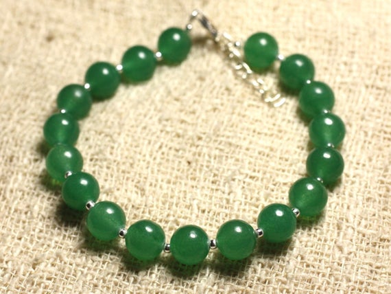 At a Great Price925 sterling Silver Natural Silver Helling 8mm stacking Green Green Jade Bracelet Round, Smooth 7" for mens, womens, gf, bf & Adult.