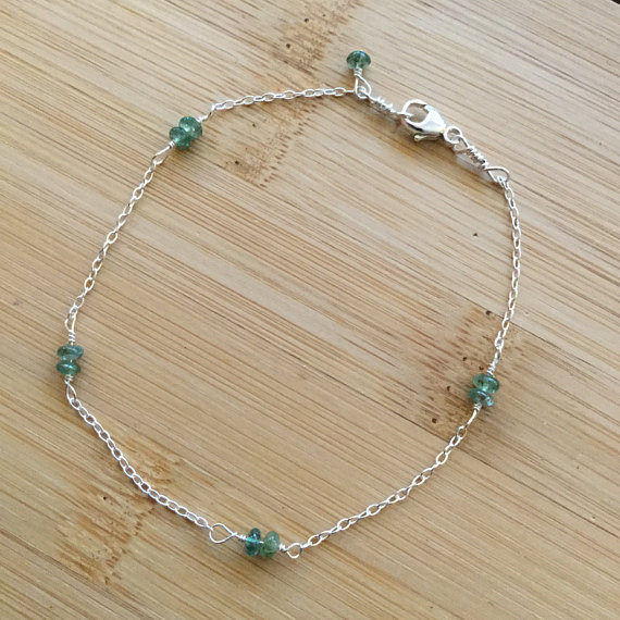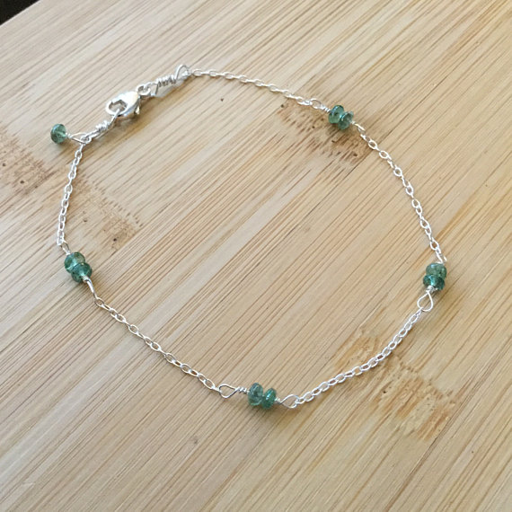 At a Great Price925 sterling Silver Personalized Gift 2mm stacking Green Emerald Bracelet Rondelle, Smooth 7" for mens, womens.