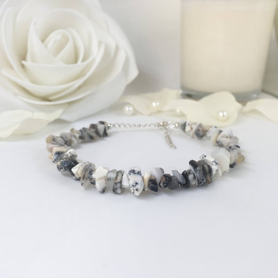 925 sterling Silver Personalized Gift 2x1-10x3mm stacking Black & White Dendrite Opal Bracelet Nugget, Smooth 7" for mens, womens, gf, bf & Adult.