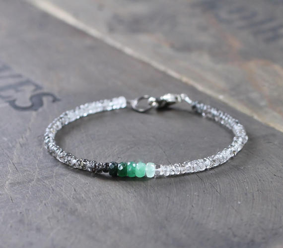 925 sterling silver Personalized Gift 3-3.5mm Multi Colour Black Rutilated Quartz & Ombre Emerald stacking Bracelet Rondelle, Faceted 18cm for mens, womens, gf, bf and adults.