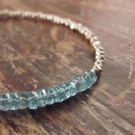925 sterling silver Personalized Gift 3mm Blue Apatite stacking Bracelet Rondelle, Faceted 18cm for mens, womens, gf, bf and adults.