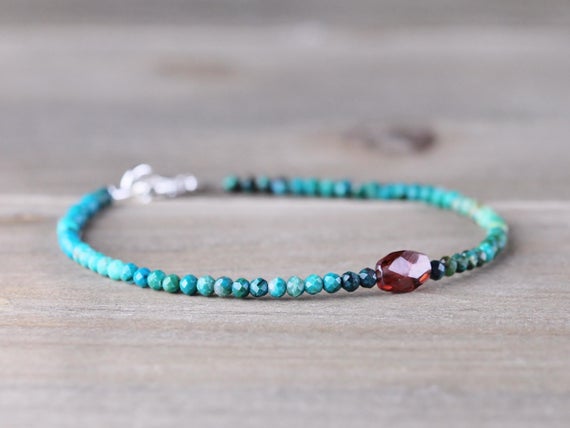 At a Great Price925 sterling silver Personalized Gift 3mm Multi Colour Chrysocolla & Garnet stacking Bracelet nugget,round, Faceted 18cm for mens, womens, gf, bf and adults.