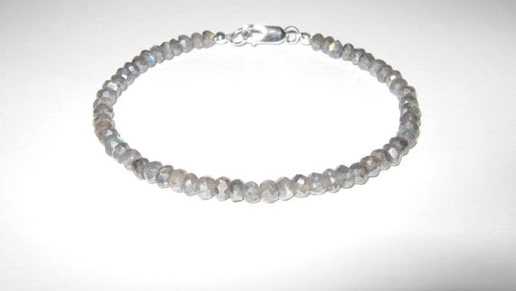 At a Great Price925 sterling Silver Personalized Gift 4mm stacking Gray Labradorite Bracelet Rondelle, Faceted 7" for mens, womens, gf, bf & Adult.