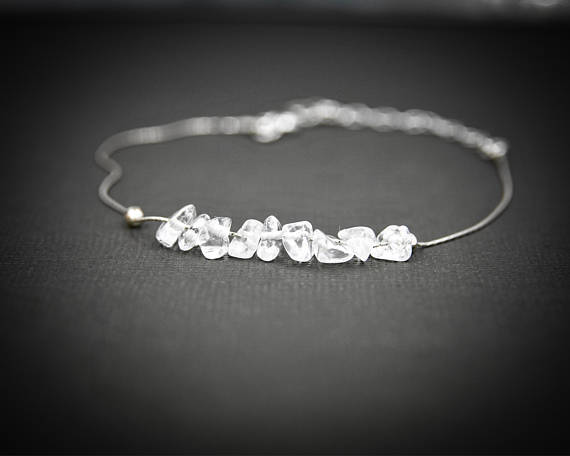 925 sterling Silver Personalized Gift 4x6mm stacking White Raw Crystal Bracelet Chips, Faceted 7" for mens, womens, gf, bf & Adult.