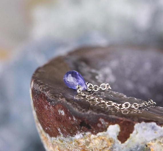 At a Great Price925 sterling silver Personalized Gift 5-6mm blue Tanzanite stacking Necklace Teardrop, Faceted 17 Inch for mens, womens, gf, bf and adults.
