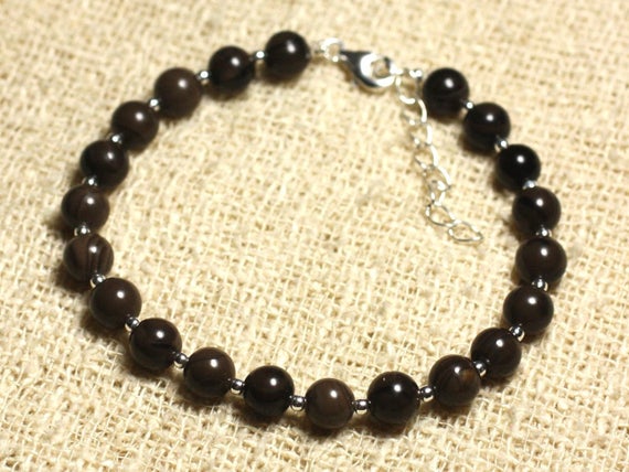 At a Great Price925 sterling Silver Personalized Gift 6mm Stracking Black coffee Jasper Bracelet Round, Smooth 7" for mens, womens, gf, bf & Adult.