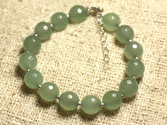925 sterling Silver Personalized Gift Silver Helling 10mm Stracking Green Green Jade Bracelet Round, Faceted 7.5" for mens, womens, gf, bf & Adult.