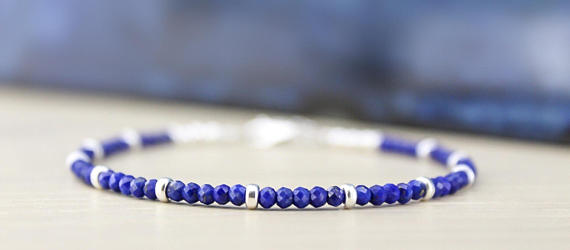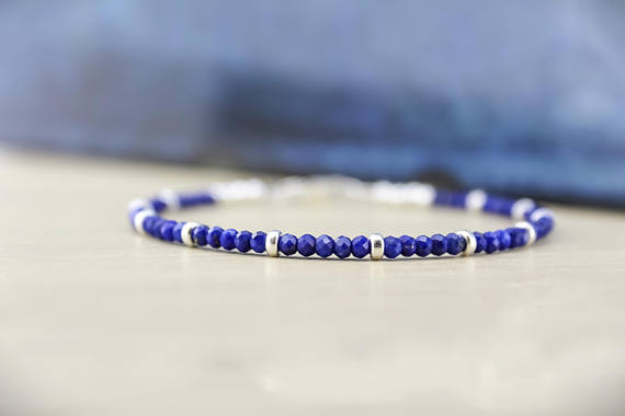 At a Great Price925 sterling Silver Personalized Gift Silver Helling 3-4mm stacking Blue LAPIS LAZULI Bracelet Round, Faceted 7" for mens, womens.