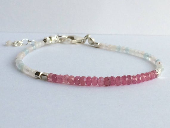 At a Great Price925 sterling Silver Personalized Gift Silver Helling 3-4mm stacking Multi Pink sapphire, morganite Bracelet Rondelle, Faceted 7" for mens, womens, gf, bf & Adult.