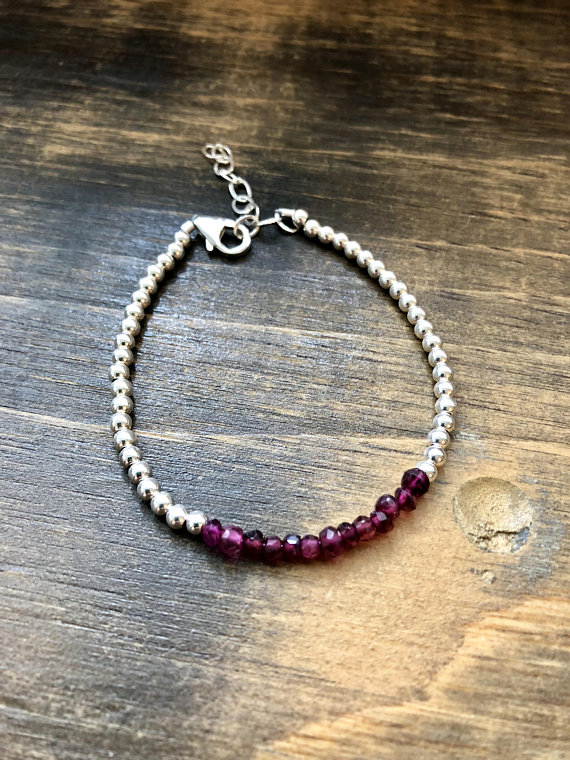 At a Great Price925 sterling Silver Personalized Gift Silver Helling 3-4mm stacking Red Garnet Bracelet Rondelle, Faceted 7" for mens, womens, gf, bf & Adult.