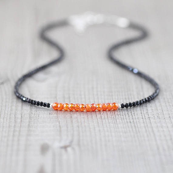 At a Great Price925 sterling Silver Personalized Gift Silver Helling 3mm stacking Black & Orange Orange Zircon & Black Spinel Necklace Round, Faceted 16" for mens, womens, gf, bf & Adult.