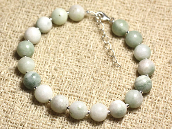 At a Great Price925 sterling Silver Personalized Gift Silver Helling 8mm stacking Green Green Jade Bracelet Round, Smooth 7" for mens, womens, gf, bf & Adult.