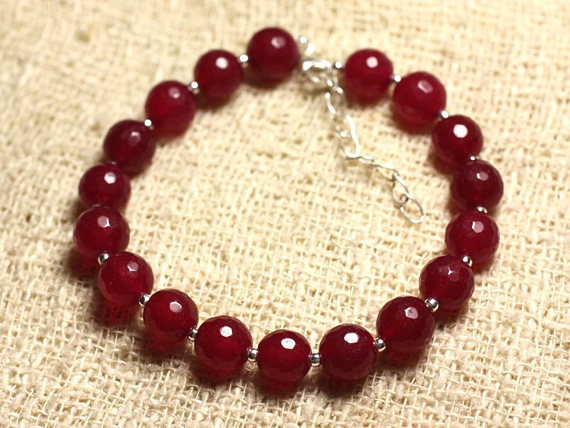 At a Great Price925 sterling Silver Personalized Gift Silver Helling 8mm Stracking Red Jade Bracelet Round, Faceted 7" for mens, womens, gf, bf & Adult.