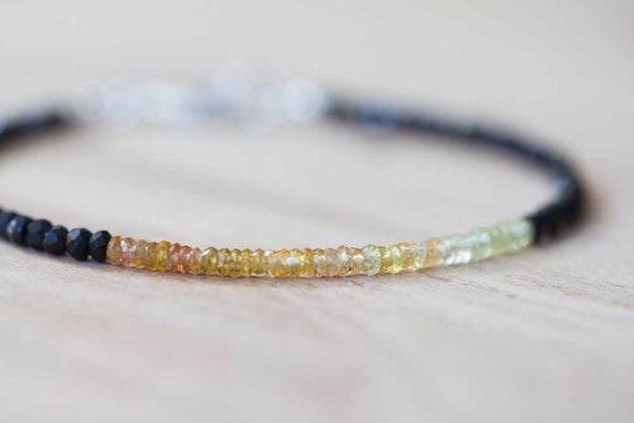 At a Great Price925 sterling silver Positive Energy 2.5-3mm Multi Colour Black Spinel & Yellow Orange Sapphire stacking Bracelet Rondelle, Faceted 18cm for mens, womens, gf, bf and adults.