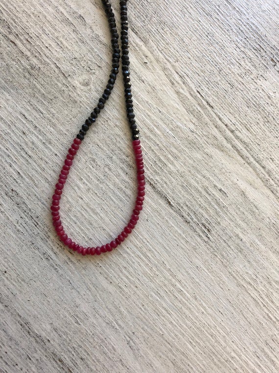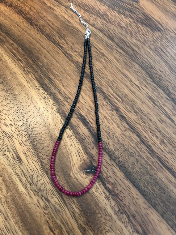 At a Great Price925 sterling Silver Positive Energy 3-4mm stacking Black & Red Ruby, Black Spinel Necklace Rondelle, Faceted 15" for mens, womens, gf, bf & Adult.