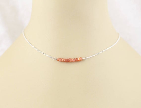 At a Great Price925 sterling Silver Positive Energy 3.5-4mm stacking Orange Sunstone Necklace Round, Smooth 16" for mens, womens, gf, bf & Adult.
