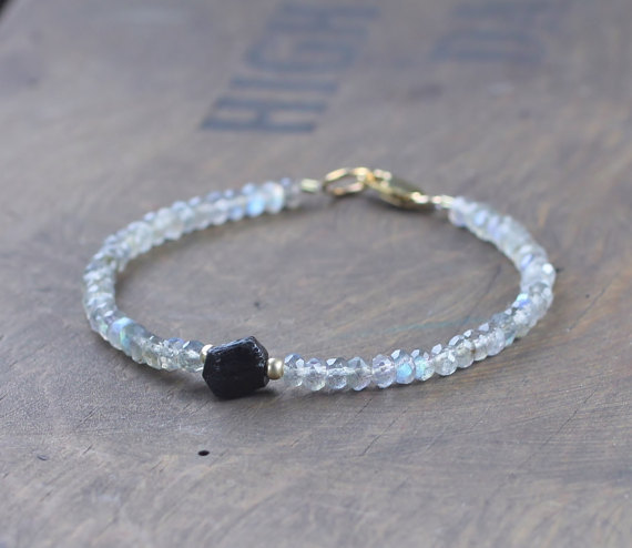 925 sterling silver Positive Energy 3.5mm Multi Colour Labradorite & Black Tourmaline stacking Bracelet Rondelle, Faceted 18cm for mens, womens, gf, bf and adults.