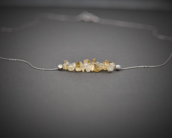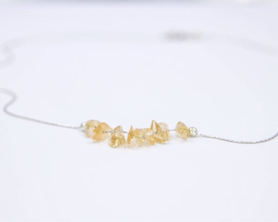 At a Great Price925 sterling Silver Positive Energy 4x6mm stacking Yellow Raw Citrine Necklace Chips, Faceted 16" for mens, womens, gf, bf & Adult.