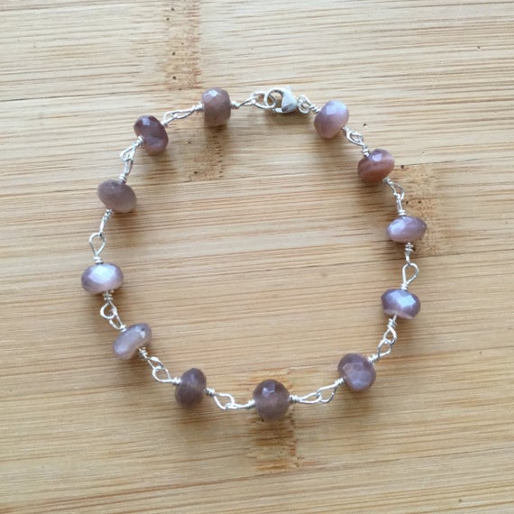 At a Great Price925 sterling Silver Positive Energy 6.5mm stacking Brown Chocolate Moonstone Bracelet Rondelle, Faceted 7" for mens, womens.
