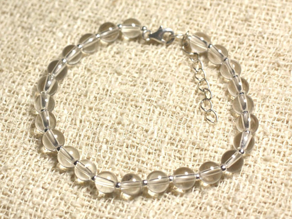 925 sterling Silver Positive Energy 6mm stacking White clear Quartz Bracelet Round, Smooth 7" for mens, womens, gf, bf & Adult.