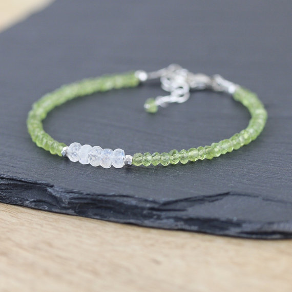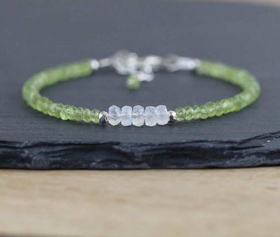At a Great Price925 sterling Silver Positive Energy Gold helling 3.5mm stacking Multi Rainbow Moonstone & Peridot Bracelet Rondelle, Faceted 7" for mens, womens, gf, bf & Adult.