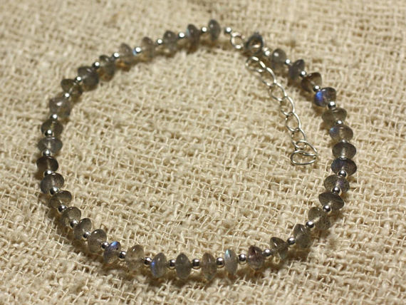 At a Great Price925 sterling Silver Positive Energy Silver helling 4-5mm Stracking Gray Labradorite Bracelet Rondelle, Smooth 7" for mens, womens, gf, bf & Adult.