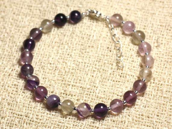 At a Great Price925 sterling Silver Positive Energy Silver helling 6mm Stracking Multi Fluorite Bracelet Round, Smooth 7" for mens, womens, gf, bf & Adult.