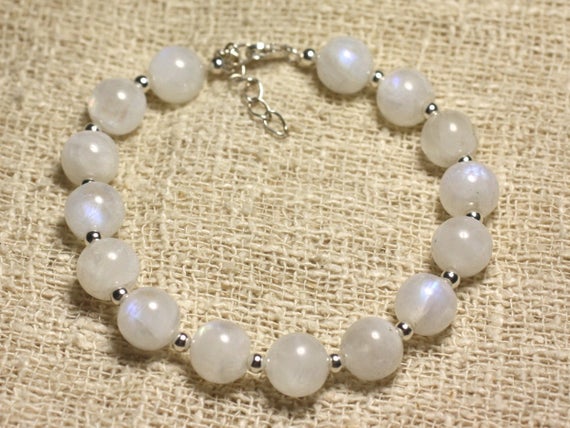 At a Great Price925 sterling Silver Positive Energy Silver helling 9mm Stracking White Rainbow Moonstone Bracelet Round, Smooth 7.5" for mens, womens, gf, bf & Adult.