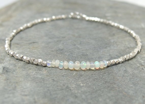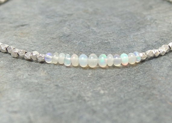 925 sterling silver Rock Gift 2-3mm White Opal stacking Bracelet Rondelle, Smooth 18cm for mens, womens, gf, bf and adults.
